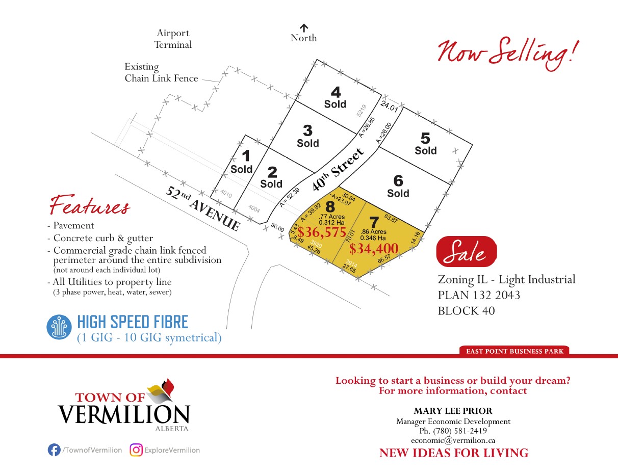Are you seeking available land in, or near, Vermilion? Let our Economic Development team help you find the best location for your business. We can provide assistance in locating: